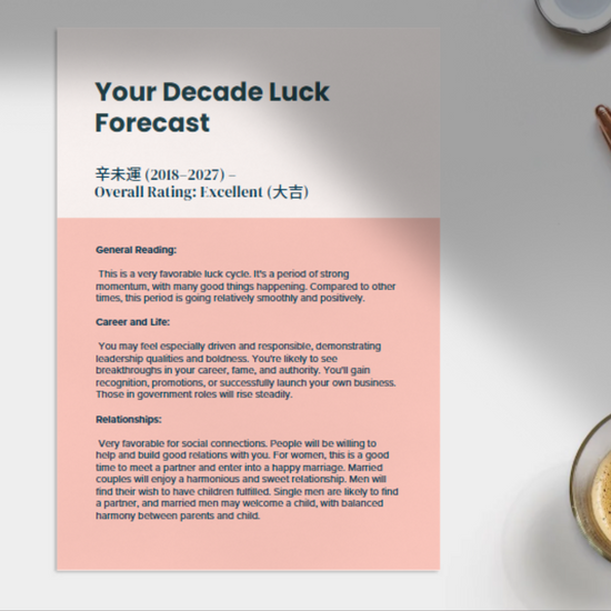 ✓ Your Luck Pillars – Gain insight into the decades of your life when opportunities will surge, and when caution is required. Know when to act, when to wait, and when to pivot.