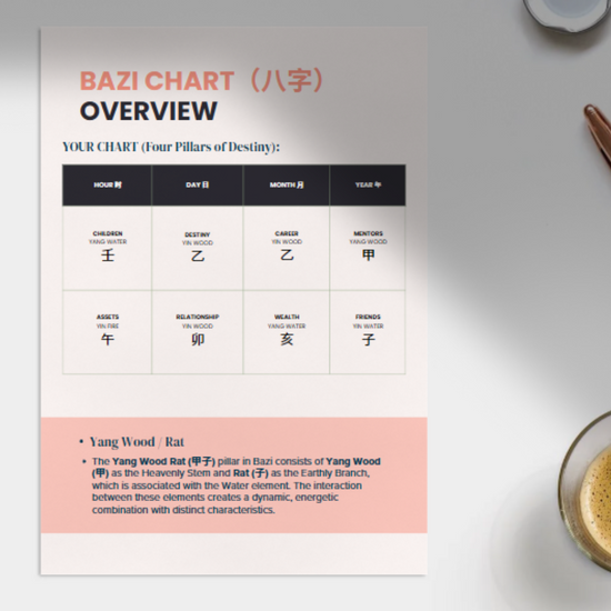 ✓ Your Day Master Profile – Learn how your BaZi chart influences your personality, relationships, career inclinations, and unique talents.