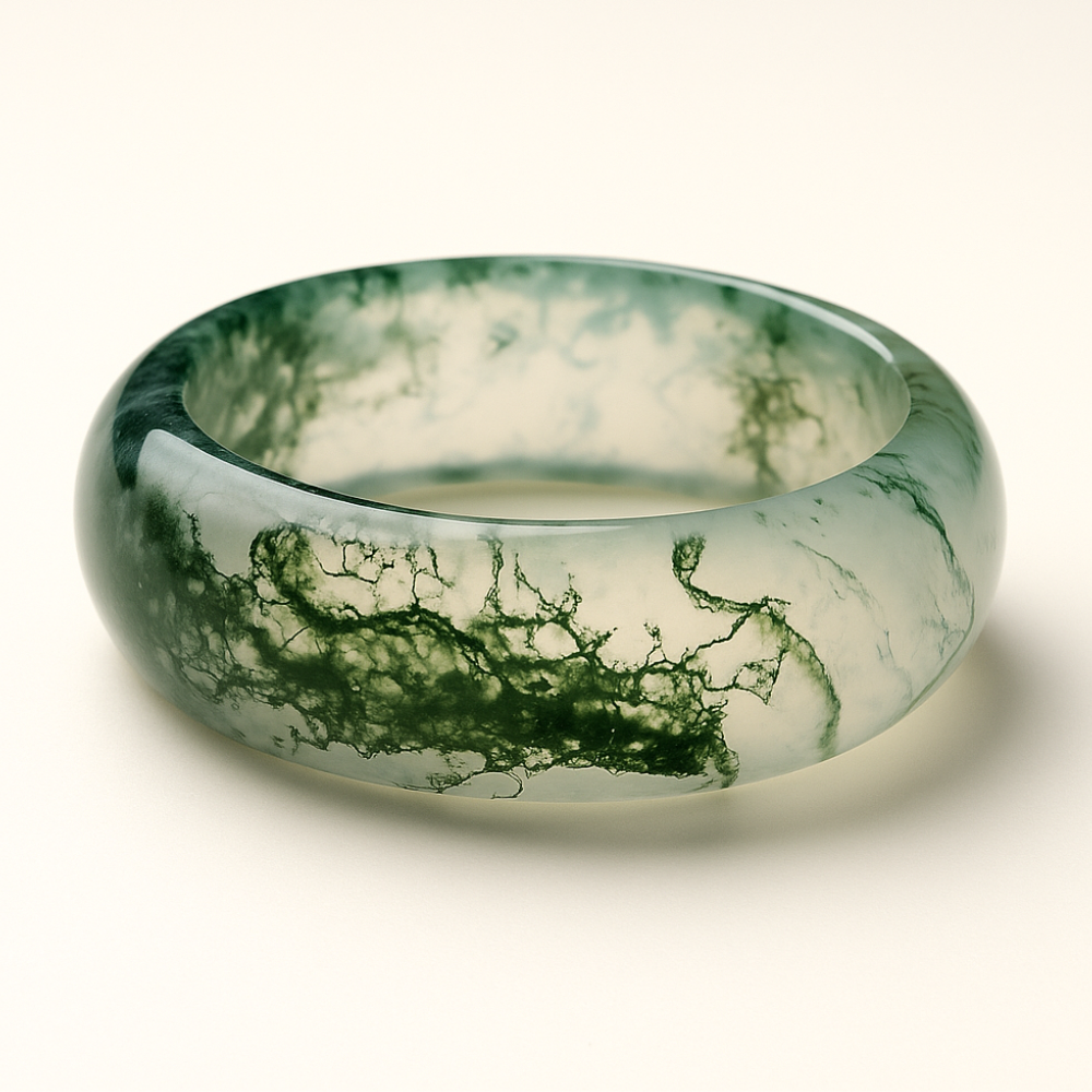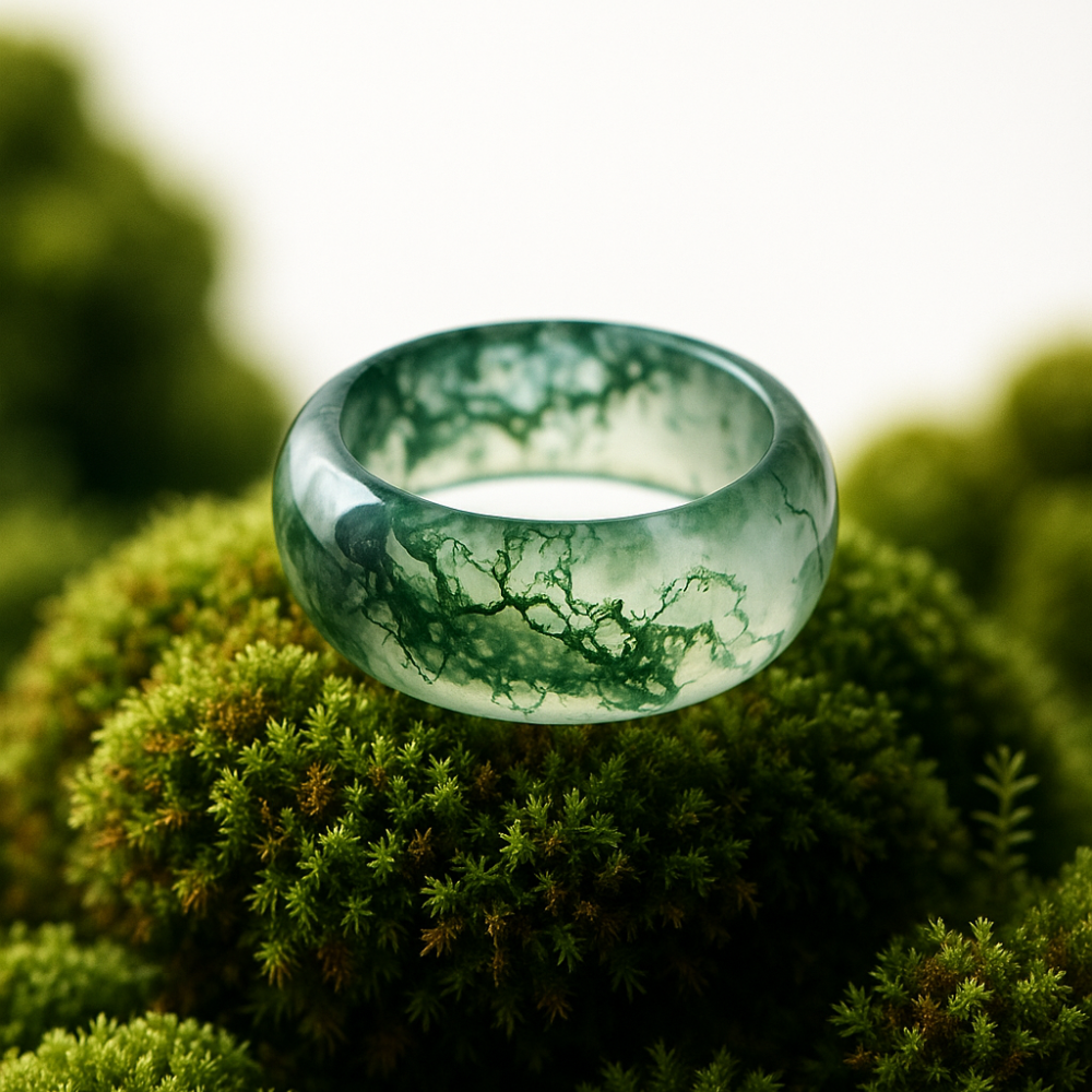Moss agate has long been revered in Feng Shui for its ability to stabilize Chi and align the body’s elemental balance. It harmonizes the flow of energy between movement and rest, allowing choices to arise with clarity rather than urgency.