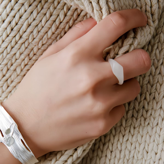 The ring’s faceted silhouette represents duality: strength and softness, intellect and feeling, clarity and depth. All surface catches light differently, creating a quiet play between reflection and stillness, a symbol of thought meeting form.